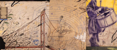 Ein Schlüsselkonzept in Eistrups Werk ist das Fragment. Seine Arbeiten erscheinen oft als vielschichtige Konstellationen aus Bildern, Linien und Materialspuren. Vintage-Fotografien, Archivreferenzen, architektonische Strukturen und expressive malerische Gesten koexistieren in ein und derselben Komposition. Anstatt im Chaos zu versinken, sind diese Elemente sorgfältig ausbalanciert, um eine Spannung zwischen Ordnung und Zerfall zu erzeugen.